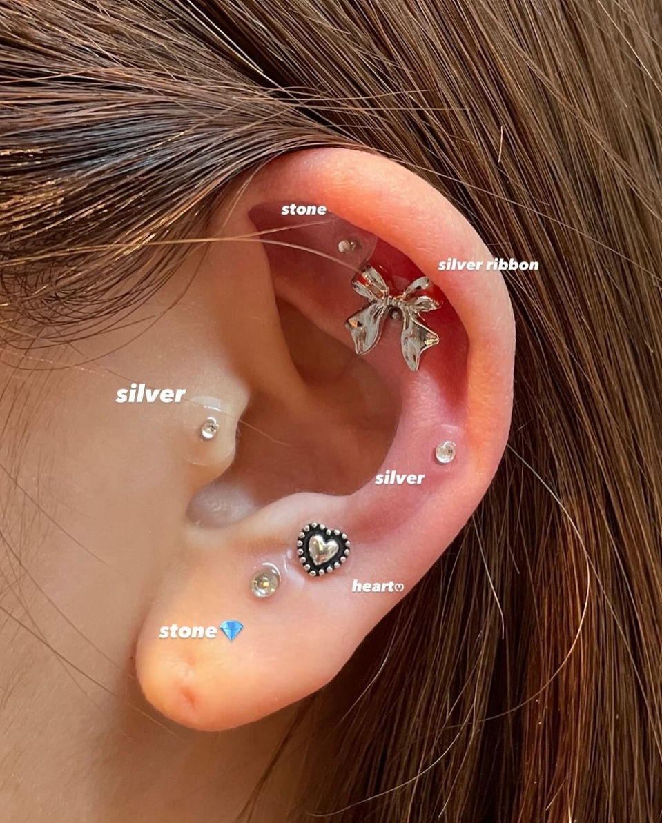 耳つぼジュエリーとは、耳つぼにチタン製の小さなボールが付いたシールを貼り、耳つぼを刺激して健康美容を目的とする施術法です。